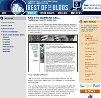 "O prêmio de popularidade para melhor blog em todo o mundo é de um brasileiro: Por um Punhado de Pixels, do veteraníssimo Nemo Nox (muito provavelmente, o primeiro ou um dos primeiros blogueiros tupiniquins)."