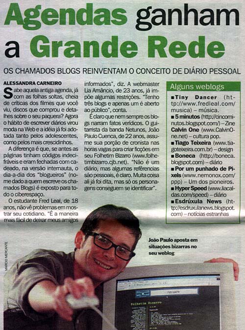 Matéria sobre weblogs no jornal O Dia de 6 de junho de 2001.
