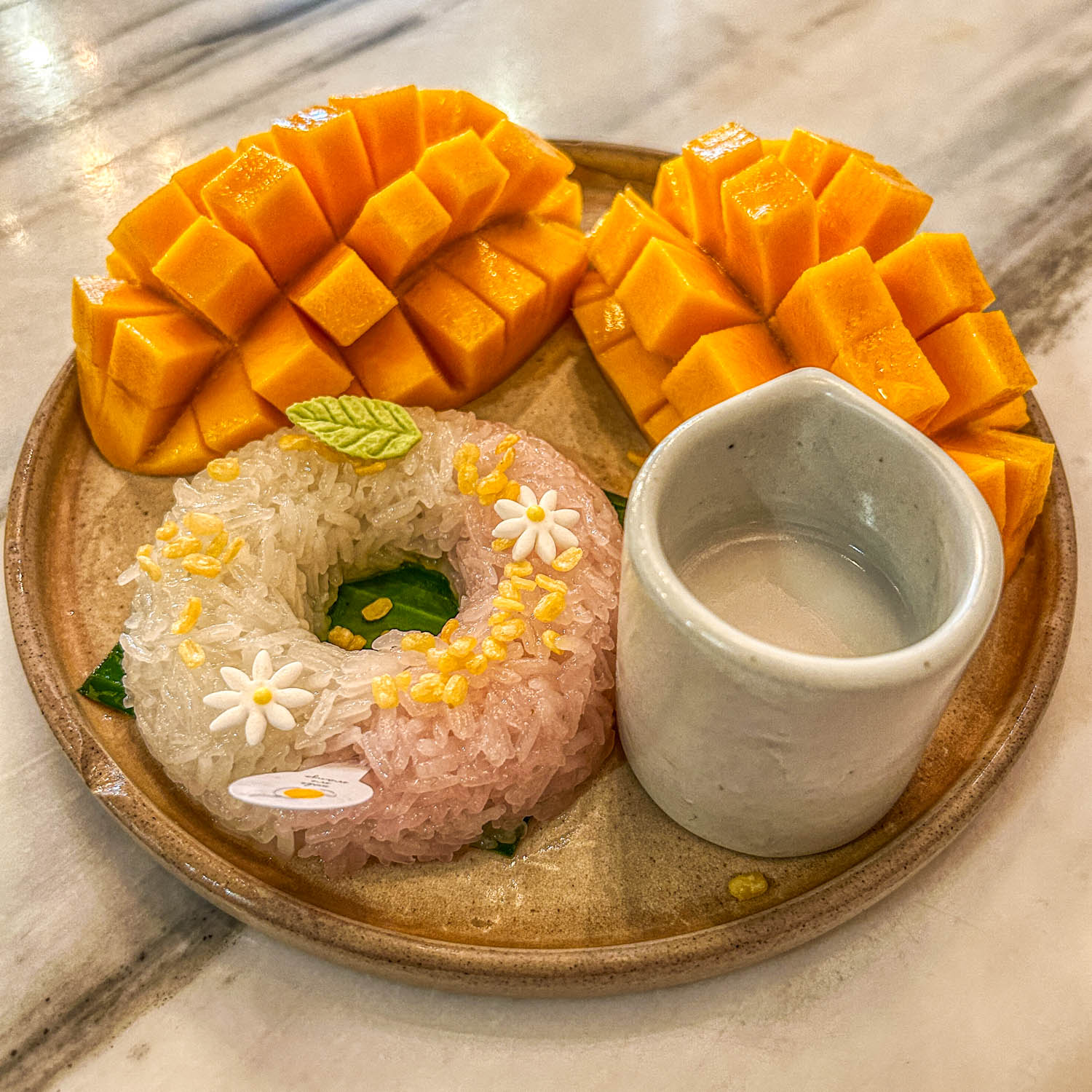 desert, mango sticky rice, which is fresh mango served with rice soaked